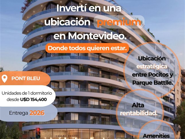 Ubicado en una esquina emblemática, Pont Bleu se encuentra en el límite entre dos de los barrios más afamados de Montevideo, en el corazón de una zona provista de una gran variedad de comercios y servicios, con amplia oferta de universidades, movida gastronómica, centros de salud, y locomoción estratégica.