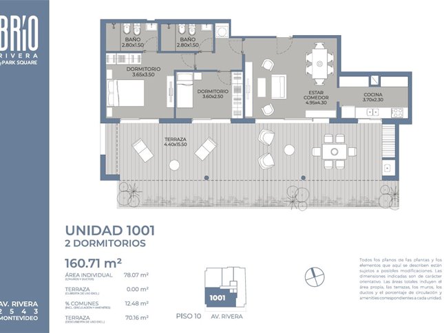 Brío es tu lugar en la ciudad. Es un proyecto que se suma a la vida urbana con apartamentos de 1 y 2 dormitorios, en donde la calidad y el confort fueron las premisas a la hora de planificar las tipologías. Su ubicación es incomparable en términos de comodidad y accesibilidad, ya que se ubica sobre uno de los principales conectores este-oeste, justo en el límite entre Parque Batlle y Pocitos, a pocas cuadras de uno de los pulmones verdes de la ciudad, ideal para salir a oxigenarse. Vivir en medio de un universo de servicios y entretenimiento es una gran ventaja para poder resolver casi todo caminando, ganar tiempo y mantenerte activo. Las vistas 360° al skyline de Montevideo se pueden disfrutar al subir al piso 11, desde la barbacoa o mientras te ejercitás en el gimnasio. Disfrutá de Brío y sus comodísimos garages y amenities polivalentes. ¡No te lo pierdas!