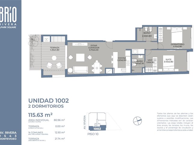 Brío es tu lugar en la ciudad. Es un proyecto que se suma a la vida urbana con apartamentos de 1 y 2 dormitorios, en donde la calidad y el confort fueron las premisas a la hora de planificar las tipologías. Su ubicación es incomparable en términos de comodidad y accesibilidad, ya que se ubica sobre uno de los principales conectores este-oeste, justo en el límite entre Parque Batlle y Pocitos, a pocas cuadras de uno de los pulmones verdes de la ciudad, ideal para salir a oxigenarse. Vivir en medio de un universo de servicios y entretenimiento es una gran ventaja para poder resolver casi todo caminando, ganar tiempo y mantenerte activo. Las vistas 360° al skyline de Montevideo se pueden disfrutar al subir al piso 11, desde la barbacoa o mientras te ejercitás en el gimnasio. Disfrutá de Brío y sus comodísimos garages y amenities polivalentes. ¡No te lo pierdas!