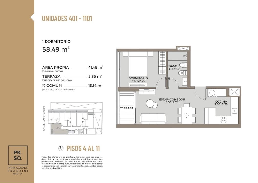 Park Square Franzini es un proyecto que dispone de 57 apartamentos de 1 y 2 dormitorios, distribuidos en 11 pisos. Todas las unidades cuentan con la totalidad de sus ambientes al exterior, con terraza privada y excelente orientación e iluminación natural. Ubicado en una ubicación premium en Montevideo, el barrio Punta Carretas es un punto estratégico de la ciudad en donde el comfort, lo urbano, lo tranquilo y lo moderno se unen en un sólo barrio.