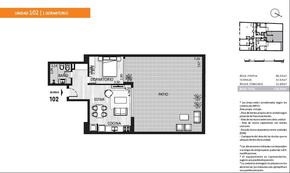 • Area total : 115 m²