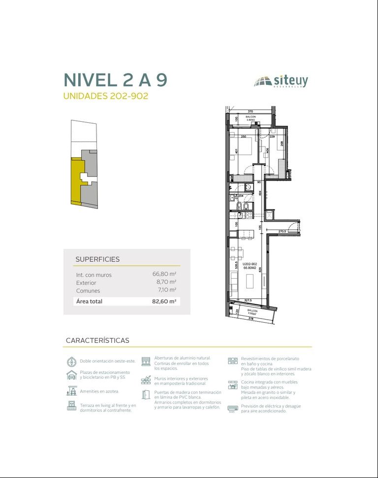 Cuenta con 15 cocheras distribuidas tanto en Subsuelo como en Planta Baja, con apartamentos con orientación Este- Oeste, con iluminación y ventilación natural, máximo aislamiento y vistas despejadas. Todas las unidades cuentan con terrazas o patios exclusivos, ¡No te lo pierdas!