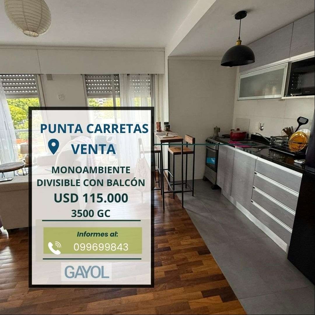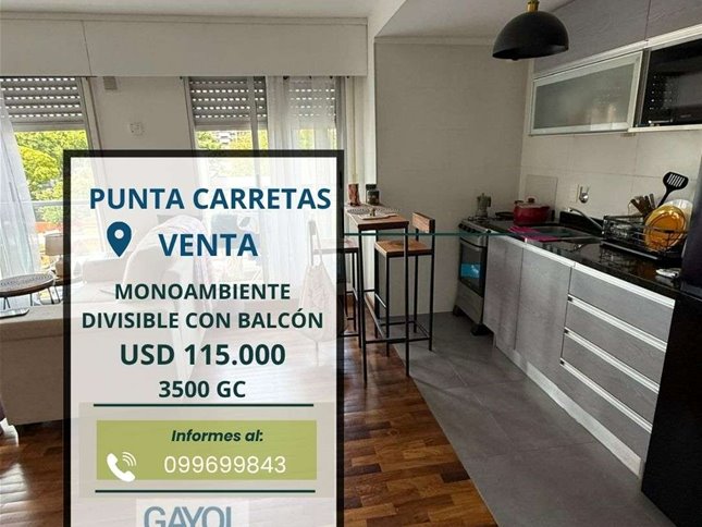 Ubicación privilegiada a pasos del Shopping Punta Carretas, Rambla, centros de salud y estudios, zona con servicios y transporte, la mejor ubicación. Ofrecemos en venta amplio monoambiente que por su distribución permite dividir a 1 dormitorio, bajos gastos comunes, edificio con piscina, parrillero y un espectacular gimnasio.