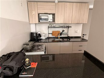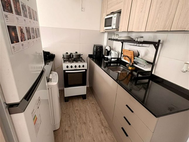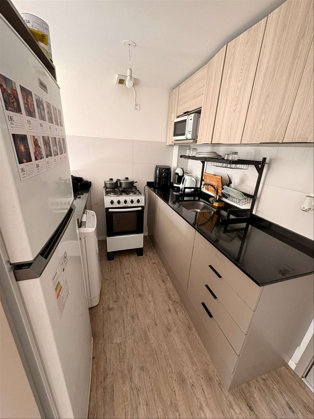 Apartamento al frente con amplia terraza, dormitorio con placard, en cocina muebles aéreos y bajo mesada.2 aires acondicionados tejido screen en ambos ambientes.