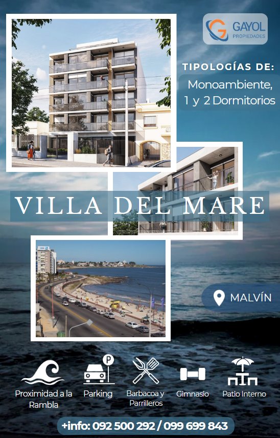 Situado en el vibrante barrio de Malvín, a solo minutos de la rambla, rodeado de una gran variedad de servicios, Villa del Mare es la oportunidad perfecta para invertir en tu futuro y disfrutar de todo lo que este maravilloso barrio tiene para ofrecer.